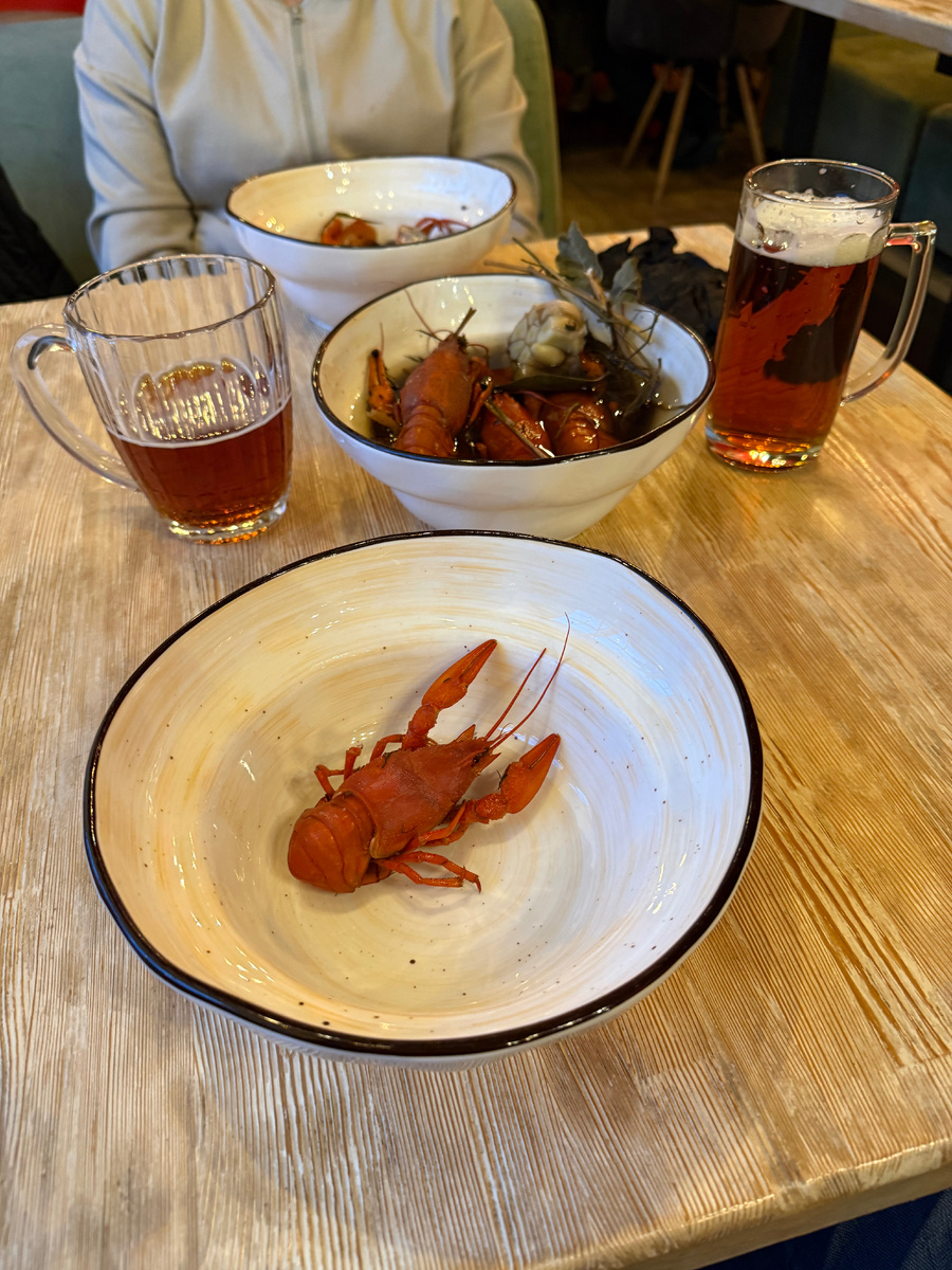 Пивоварня предлагает несколько видов собственного пива, а именно – лагер, который прекрасно дополняет закуску. Например, порция раков размером L в классической варке обойдется вам всего в 2898 рублей, а пиво Раковар - 185 рублей.