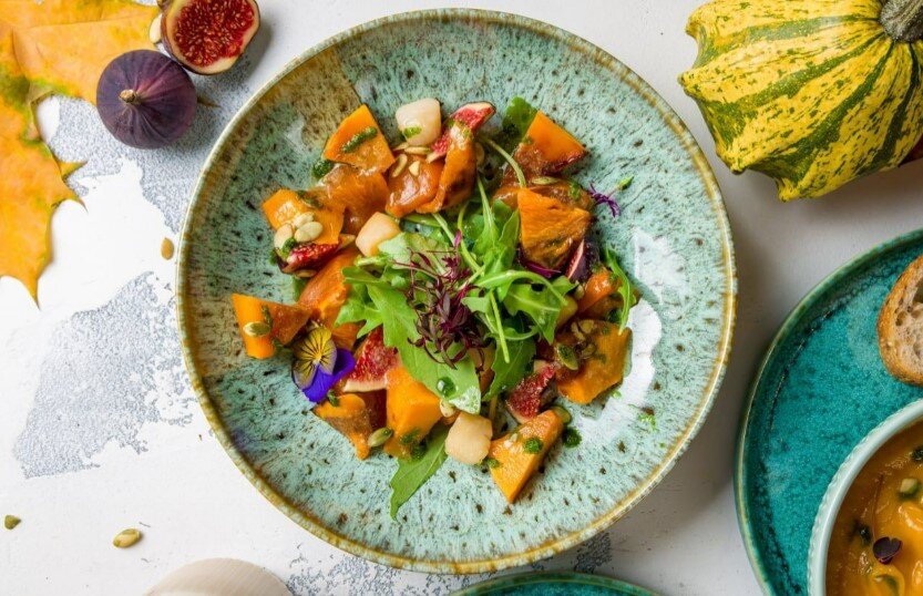 Представляем вам невероятно вкусный и необычный салат, который сочетает в себе сладость тыквы, нежность гребешков и яркость фруктов. Это блюдо станет отличным выбором для вашей трапезы.