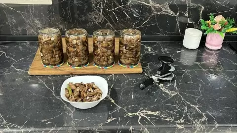 5. Консервирование: Горячие грибы с бульоном помещаются в стерилизованные банки. Их закатывают крышками и переворачивают вверх дном, накрывая теплым одеялом для остывания.