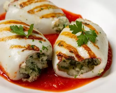Фаршированные кальмары — это кулинарная классика, не оставляющая равнодушными любителей морепродуктов. Нежные тушки с насыщенной начинкой из свежего хлеба, зелени и анчоусов, томящиеся в обволакивающем томатном соусе, несомненно, станут звездой любого стола.