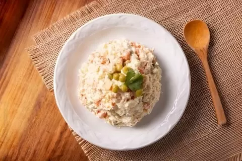 Все эти ингредиенты были поданы под нежным соусом провансаль, то есть майонезом. В центре блюда находилась смесь отварного картофеля с каперсами, а декорировался салат отваренными вкрутую яйцами. Гастрономы того времени были в восторге от этого творения!