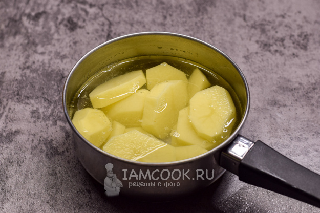 Первым делом следует очистить картошку и нарезать ее крупными кусками. Затем заливается водой и варится около 20–30 минут до полной готовности. Пока картофель варится, стоит подготовить овощи: нарезать бекон полосками, а лук-порей – тонкими кольцами. Чеснок также нужно мелко порубить, чтобы его аромат смог раскрыться при жарке.