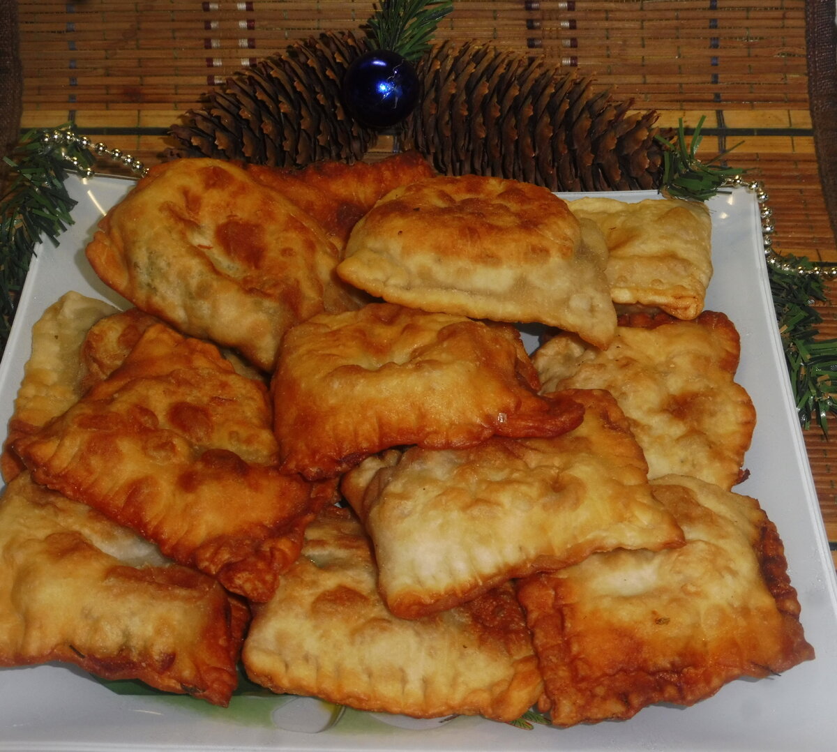 Тесто раскатайте и нарежьте на полоски, на которые затем выкладывайте начинку. Защипните края, сформировав аккуратные пирожки. Жарьте их на сковороде с растительным маслом до золотистой корочки. Готовые мини-пирожки следует выложить на бумажное полотенце, чтобы избавиться от лишнего жира.
