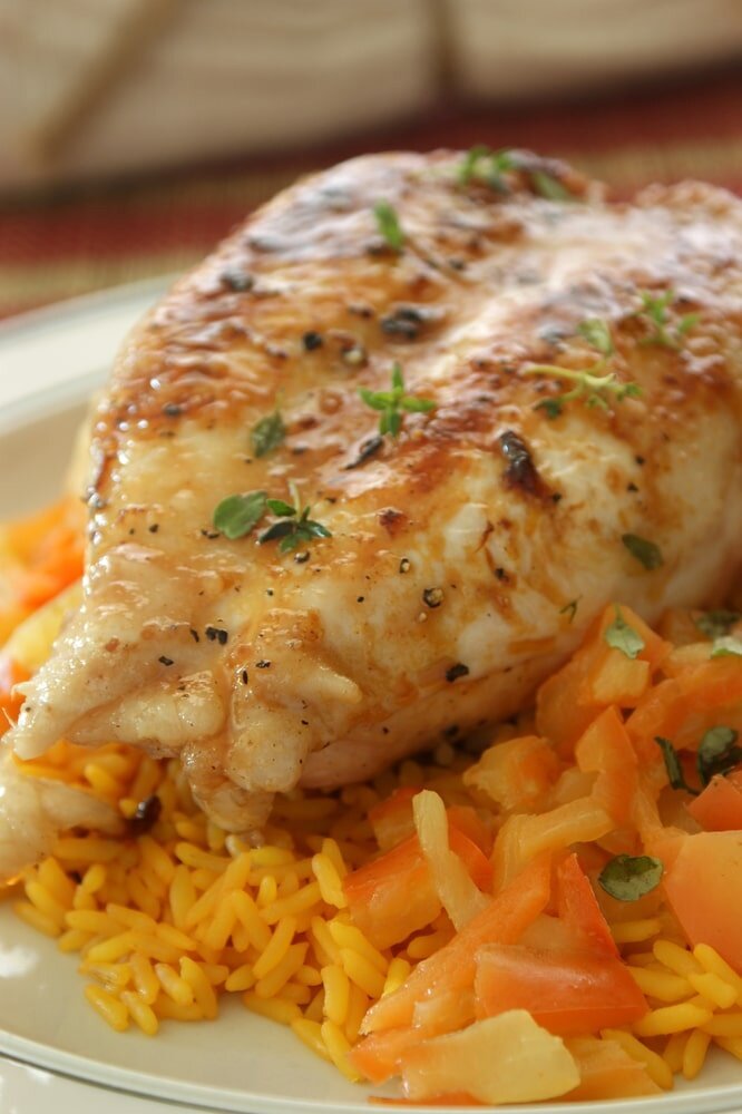 6. Готовность мяса можно проверить с помощью ножа или вилки: если сок прозрачный, курица готова. Ароматная куриная грудка в медовом соусе с карри станет настоящим украшением вашего стола.