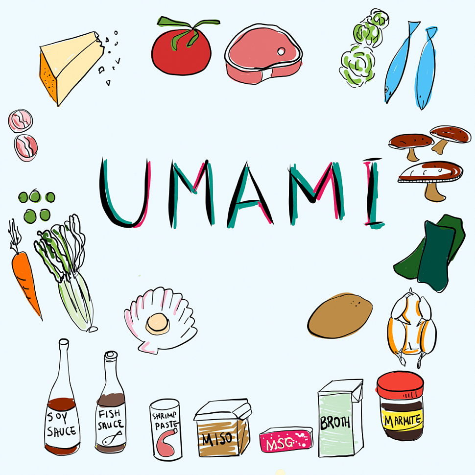 Умами, пятый вкус, в переводе с японского звучит как «приятный пикантный вкус». В отличие от известных сладкого, солёного, кислого и горького, умами вызывает ощущение глубокой сытости и богатства вкуса. Его источниками являются нуклеотиды, богатые в продуктах, таких как помидоры, мясо, грибы и соевый соус.