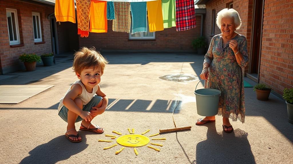 Бабушка взглянула на его рисунок, прищурилась и произнесла с нежностью: «Я в детстве всегда начинала с солнца. Каждый давал лучам имена, так весь двор рисовал. Хочешь, помогу дорисовать?»