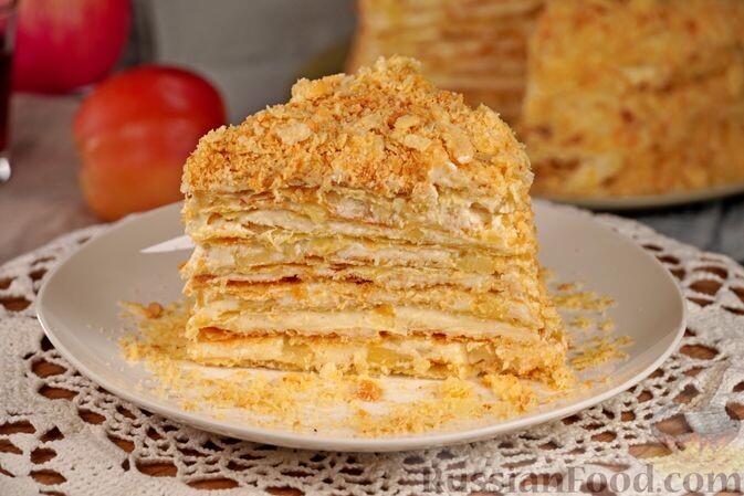 Популярный торт "Наполеон" в этом рецепте приобретает новые нотки благодаря добавлению яблок. Основой для коржей служит нежное тесто на сметане. Для получения особой рассыпчатости можно заменить сливочное масло на маргарин. Заварной крем, смешанный с кусочками яблок, делает торт свежим и восхитительным.