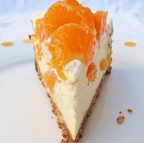 4. Извлечь тесто из холодильника, выложить на него творожную массу, сверху украсить оставшимися дольками мандаринов. Выпекать в разогретой духовке при температуре 180 градусов в течение часа. Если верх пирога начнет слишком сильно румяниться, прикрыть его фольгой. Дать пирогу остыть и подавать к столу.