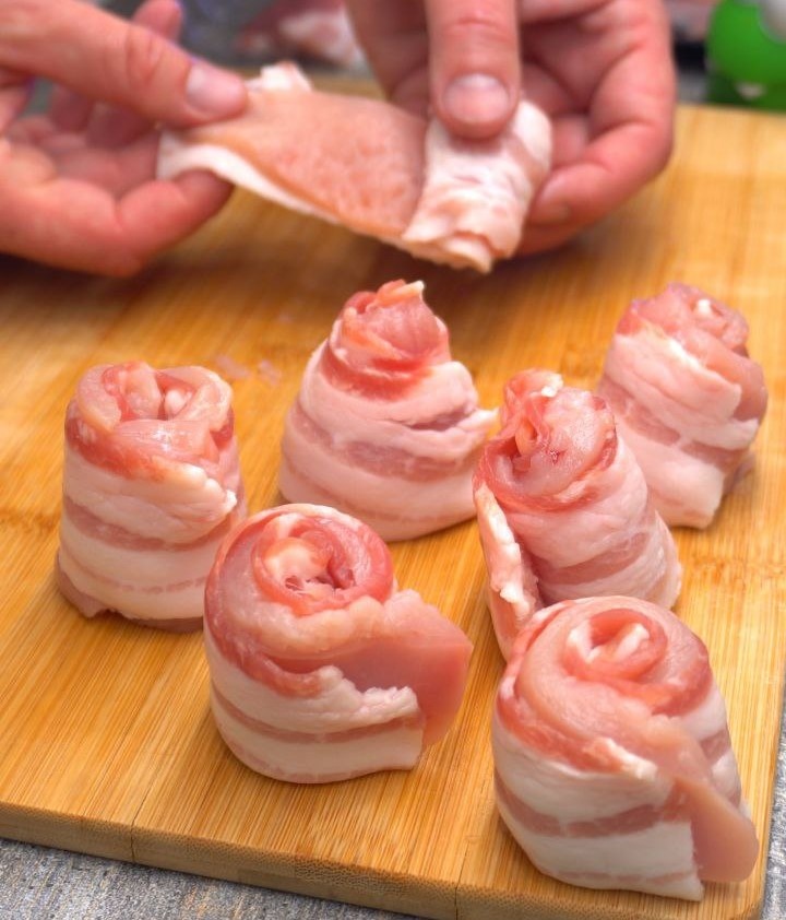 - Тонкие полоски бекона — 200 г