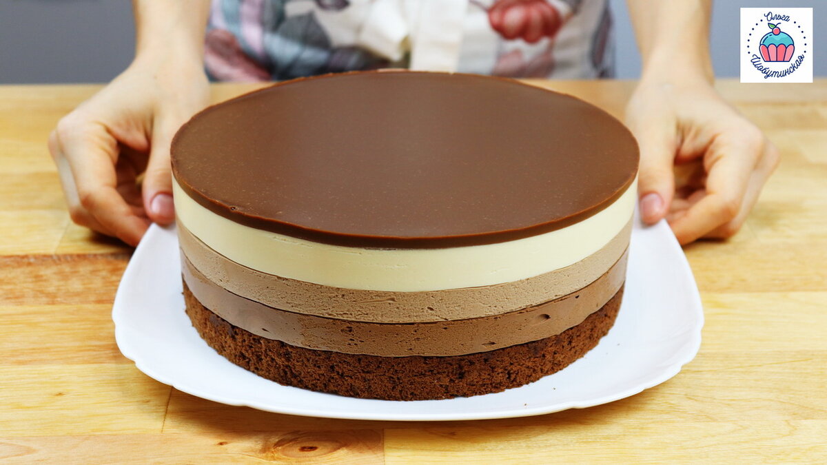 Аналогичным образом приготовьте муссы из молочного и белого шоколада, заменяя тёмный шоколад нужным сортом. Каждый слой необходимо охладить в холодильнике на 40–60 минут для достижения нужной текстуры.