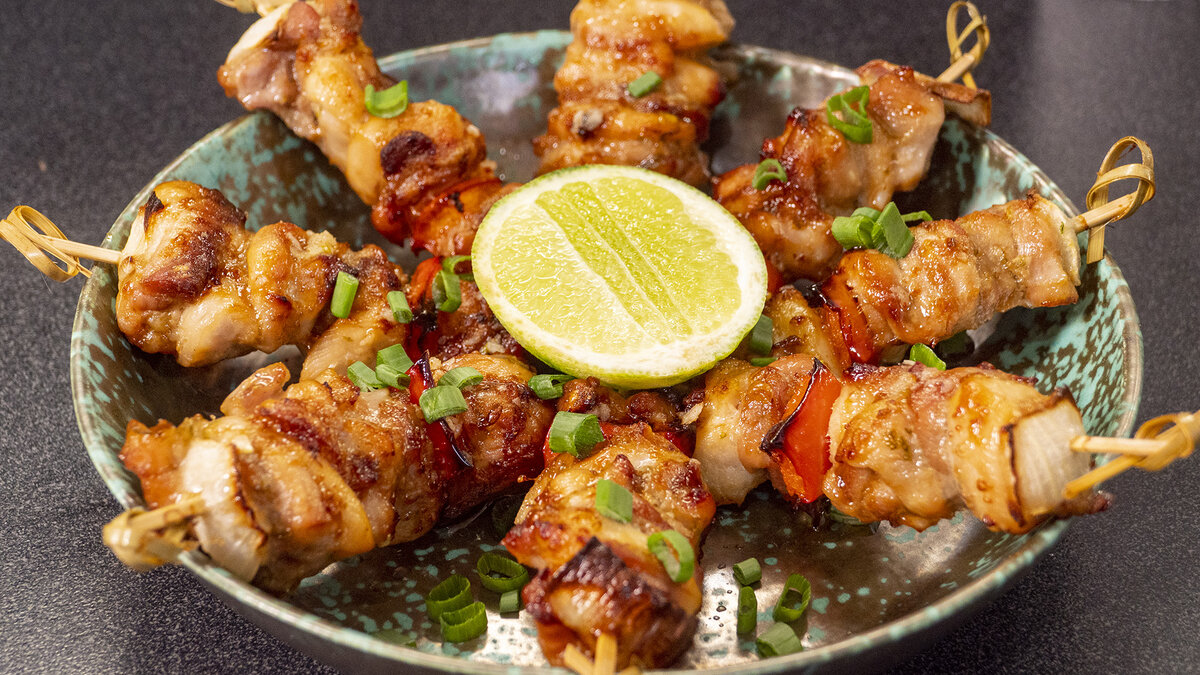 Пока шашлычки готовятся, создайте вкусную намазку. В небольшой мисочке выдавите зубчик чеснока через пресс, добавьте оливковое масло, сок от трети лимона, ставьте немного соли и щепотку копченого чипотле. Хорошенько перемешайте все ингредиенты. По истечению 20 минут, вынимайте готовые шашлычки, выложите их на тарелку, смажьте чесночно-лимонной намазкой и посыпьте мелко нарезанным зеленым луком. Эти шашлычки просты в приготовлении и удивительно вкусны — настоящее лакомство для тех, кто хочет порадовать себя и своих близких.
