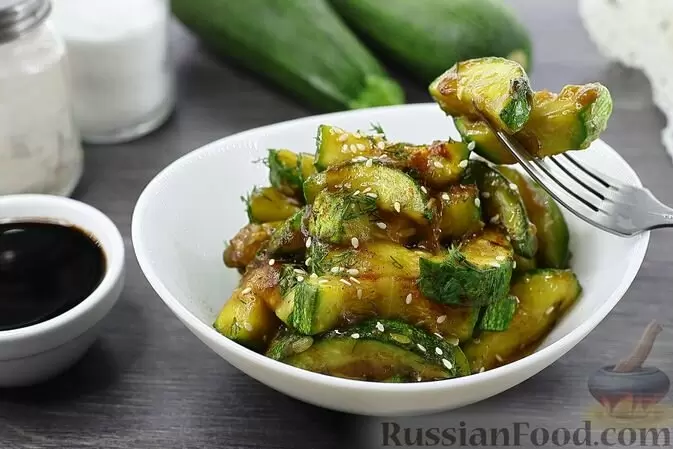 Кабачки с чесноком и соевым соусом