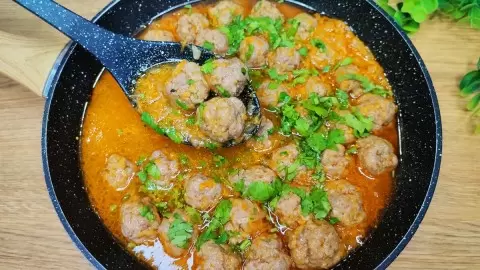 Как только фарш готов, сформируйте из него небольшие фрикадельки и отправьте их в сковороду с подливой. Тушите на медленном огне в течение 20-25 минут. Перед подачей на стол не забудьте посыпать блюдо нарезанной петрушкой для свежести.