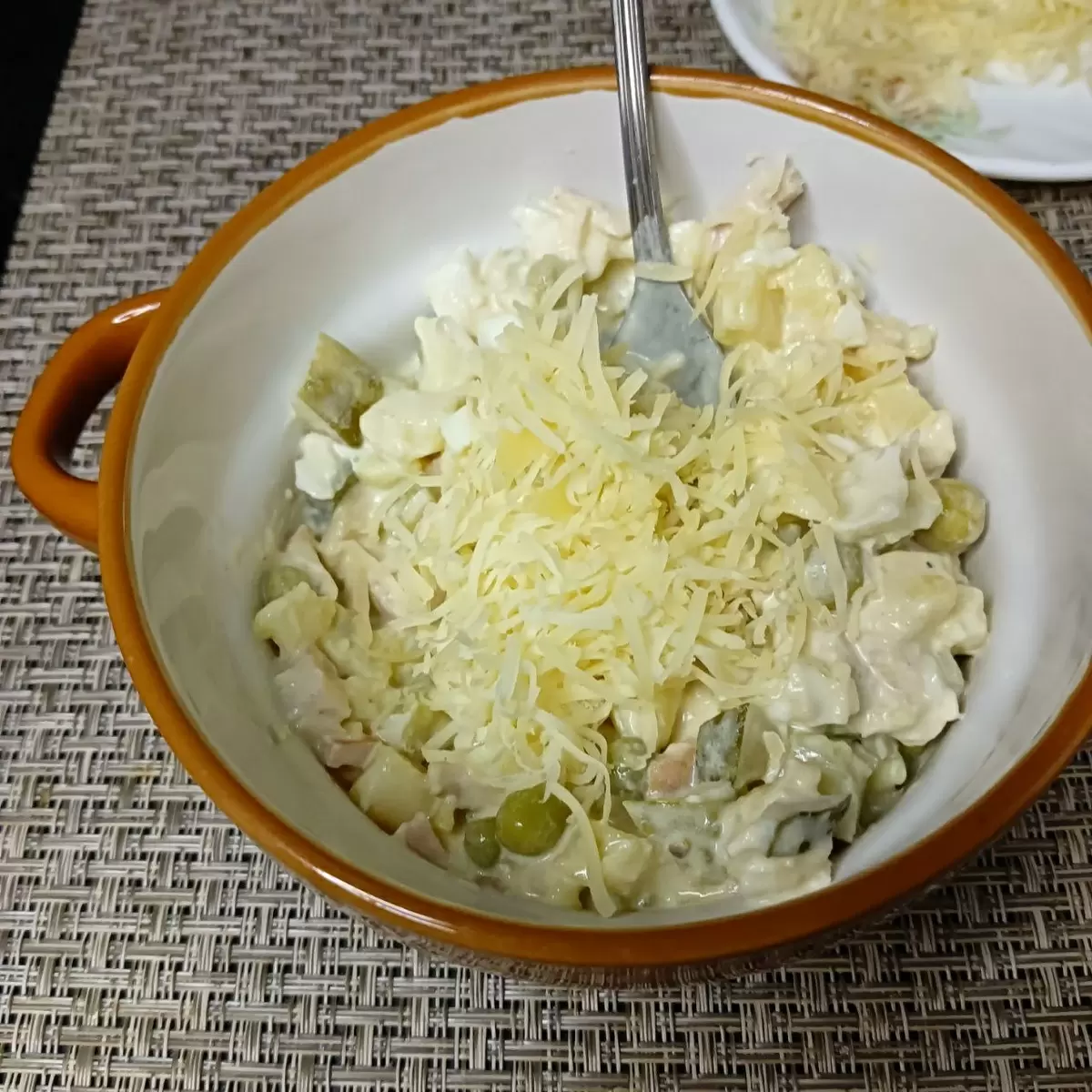 - Пицца-оливье: Раскатать тесто (слоёное или дрожжевое), смазать его майонезом и выложить оставшийся оливье. Сверху присыпать сыром и выпекать в разогретой до 180°C духовке около 20 минут.
