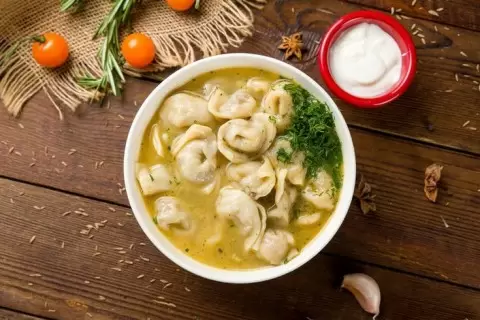 4. Варите чучвару в бульоне из мяса на кости 5-7 минут и подавайте с зеленью или соусом.