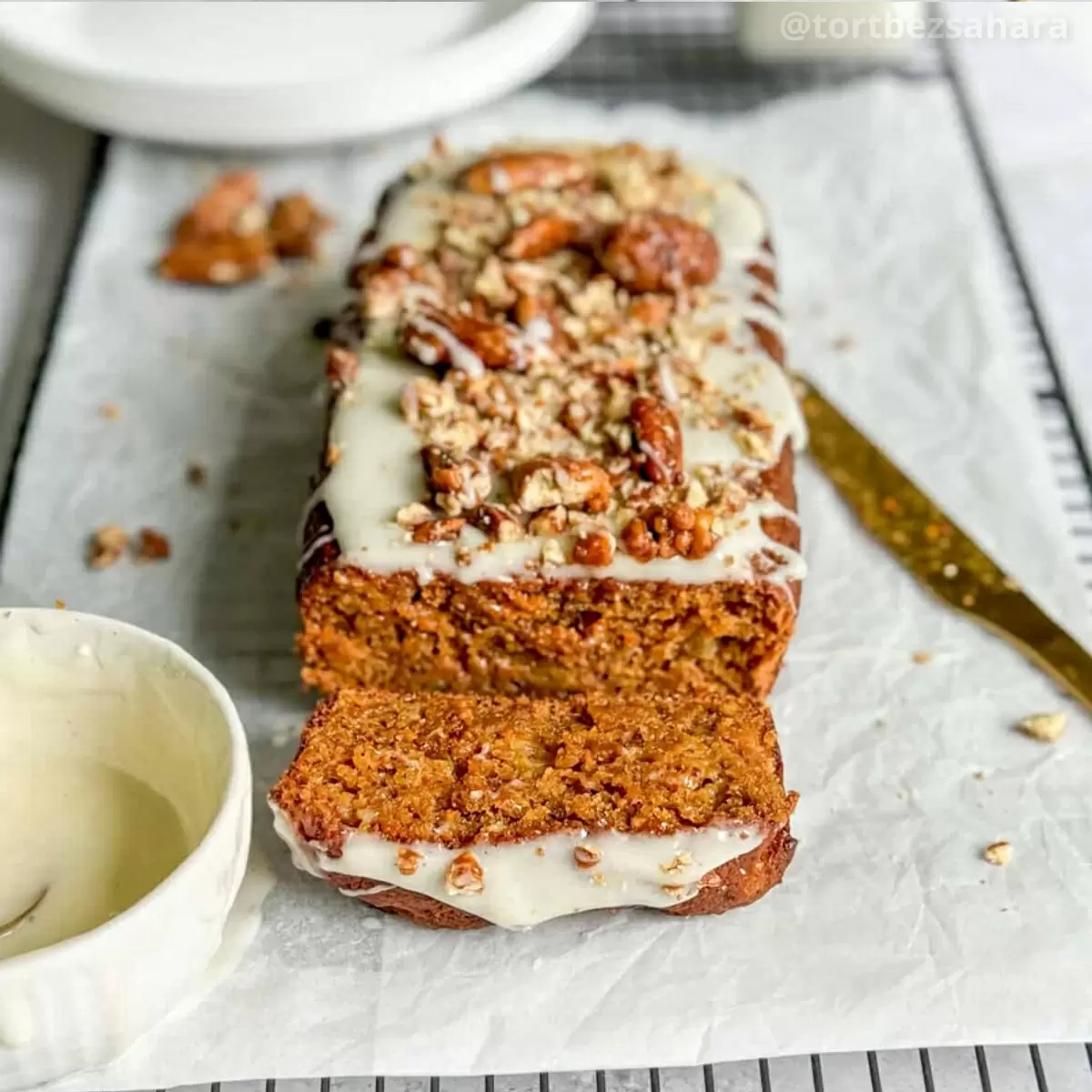 Этот кекс впечатляет своим влажным текстурой и отменным вкусом, дополненным нотками корицы и имбиря. А верхушку украшает крем, который добавляет особую изюминку к этому блюду.