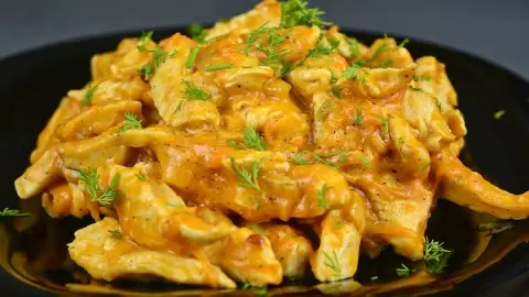 Когда возникает необходимость быстро приготовить вкусный ужин, этот рецепт бефстроганова с томатно-сметанным соусом — отличное решение. Традиционно это блюдо готовят из говядины, однако куриное филе делает его невероятно нежным и сочным.