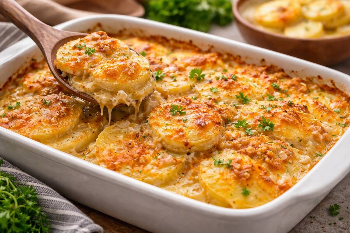 Все мы знакомы с картошкой: её жарят, варят, из неё делают пюре. Но многие забывают, что этот скромный овощ может удивить вкусом и стать настоящим кулинарным шедевром. Этот секрет открылся многим, когда картофель был запечён слоями и покрыт ароматным соусом, создавший настоящий праздник для вкусовых рецепторов.