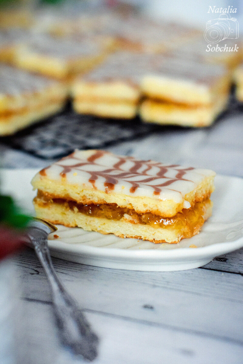 После этого пирожное оставляется пропитываться на 2 часа, после чего его можно нарезать и наслаждаться. По этому рецепту получится около 18 аппетитных пирожных, которые напомнят о беззаботных школьных днях.